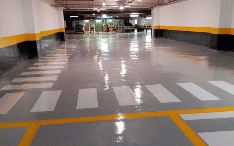 Pintura e demarcação em epóxi no estacionamento