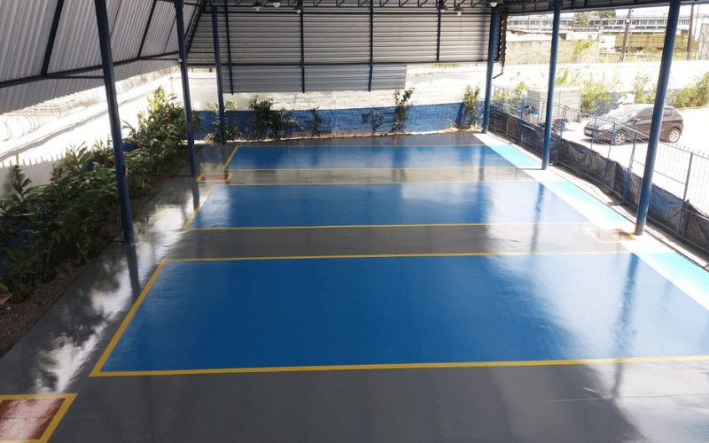 Pintura epóxi e demarcação de quadra esportiva