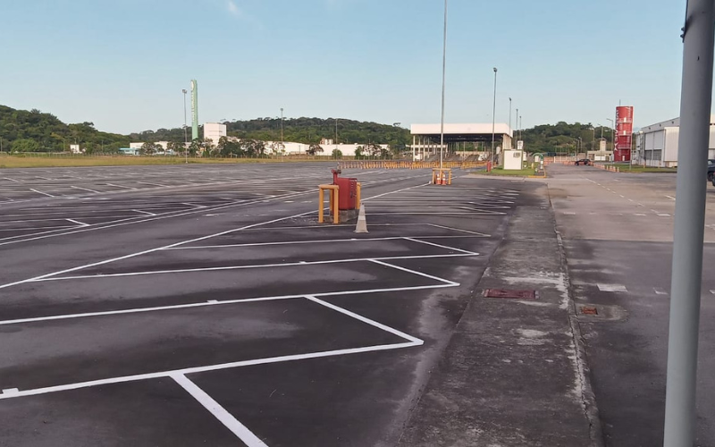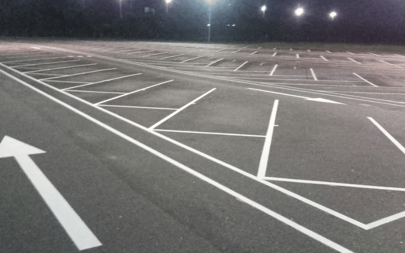 Demarcação viária em estacionamento